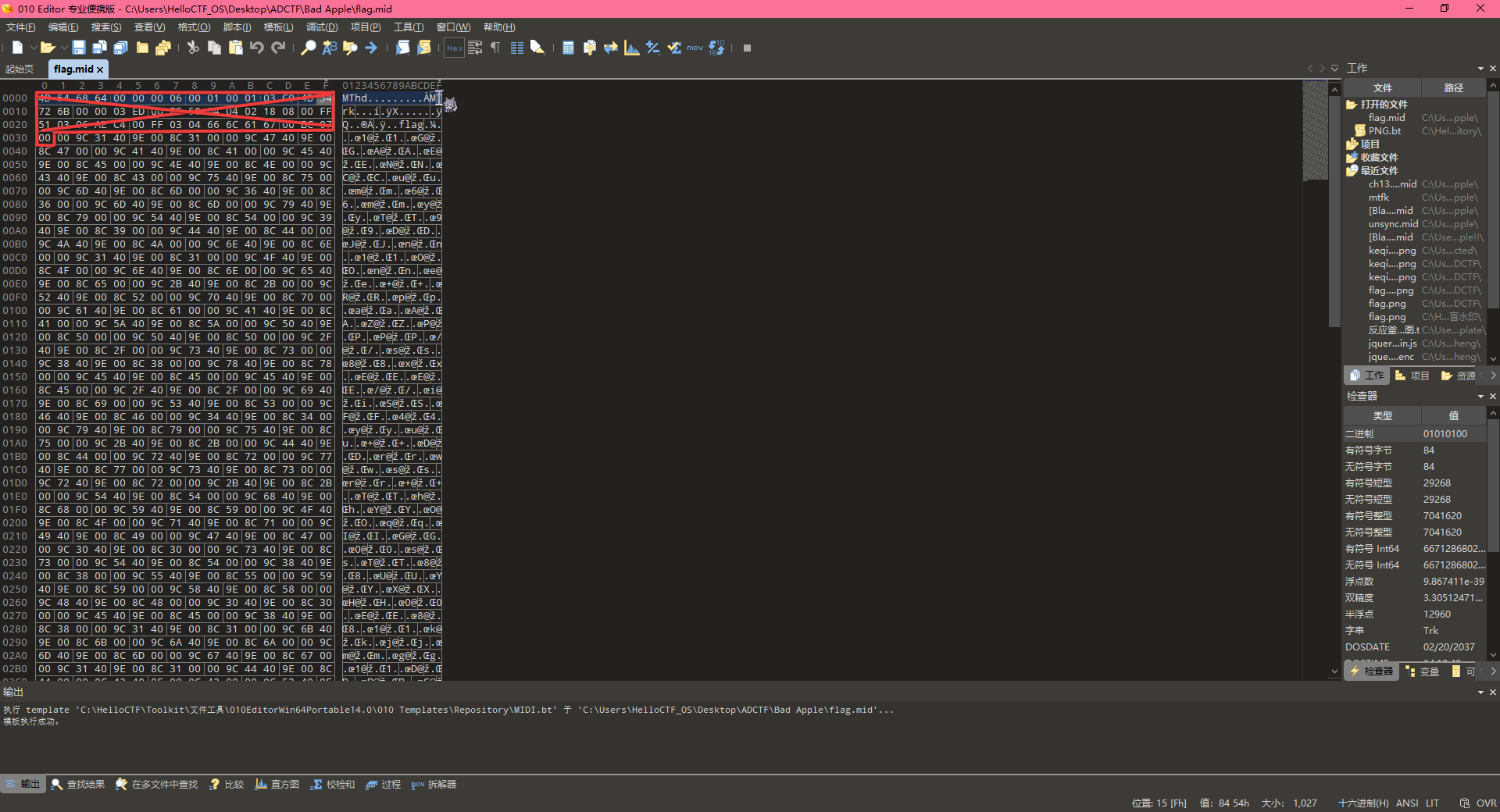 在这编辑器里把其他轨道都删除,然后只保留12轨道,另存为文件,丢入010Editor,发现除了下图红框部分,下面的内容都可以每9个字节分为一组,并且有固定的格式00 9C {31} 40 9E 00 8C {31} 00,其中{31}处是可变的,猜测为音符对应的十六进制