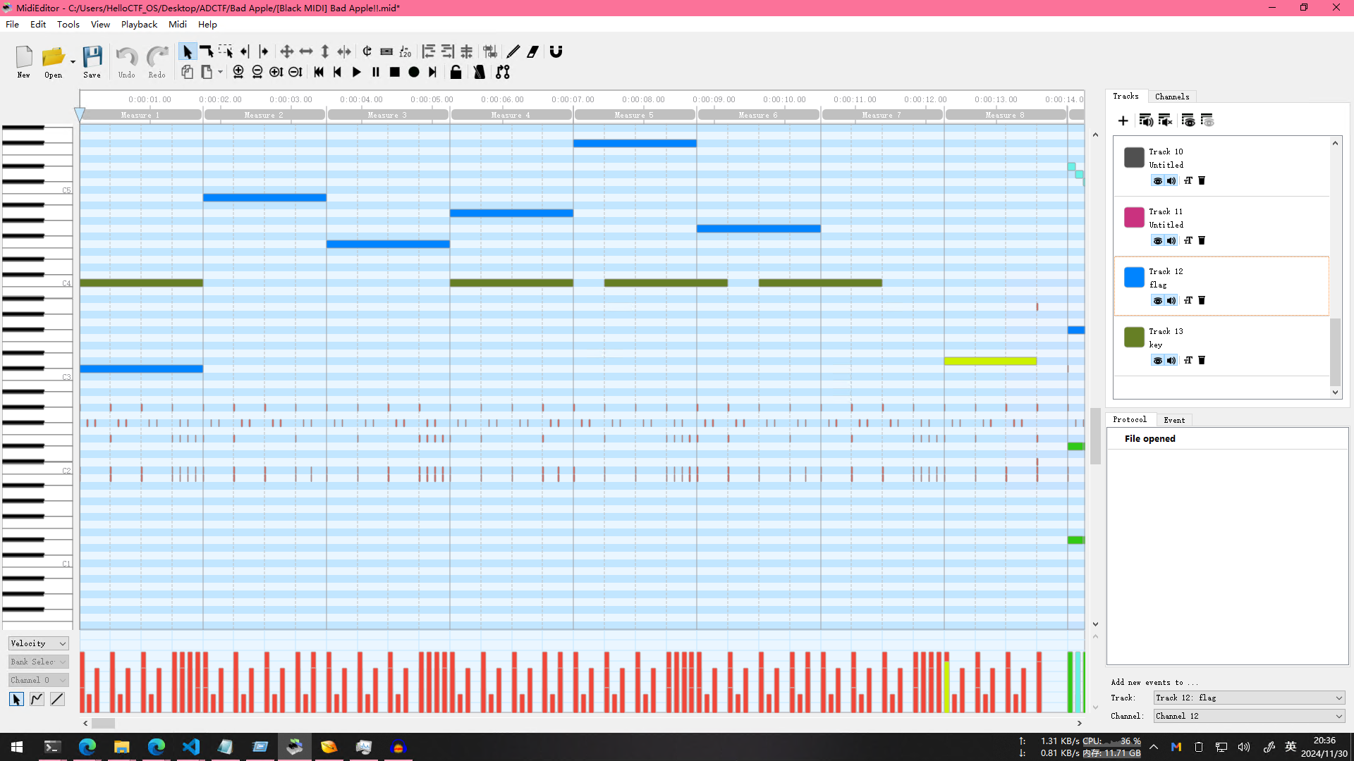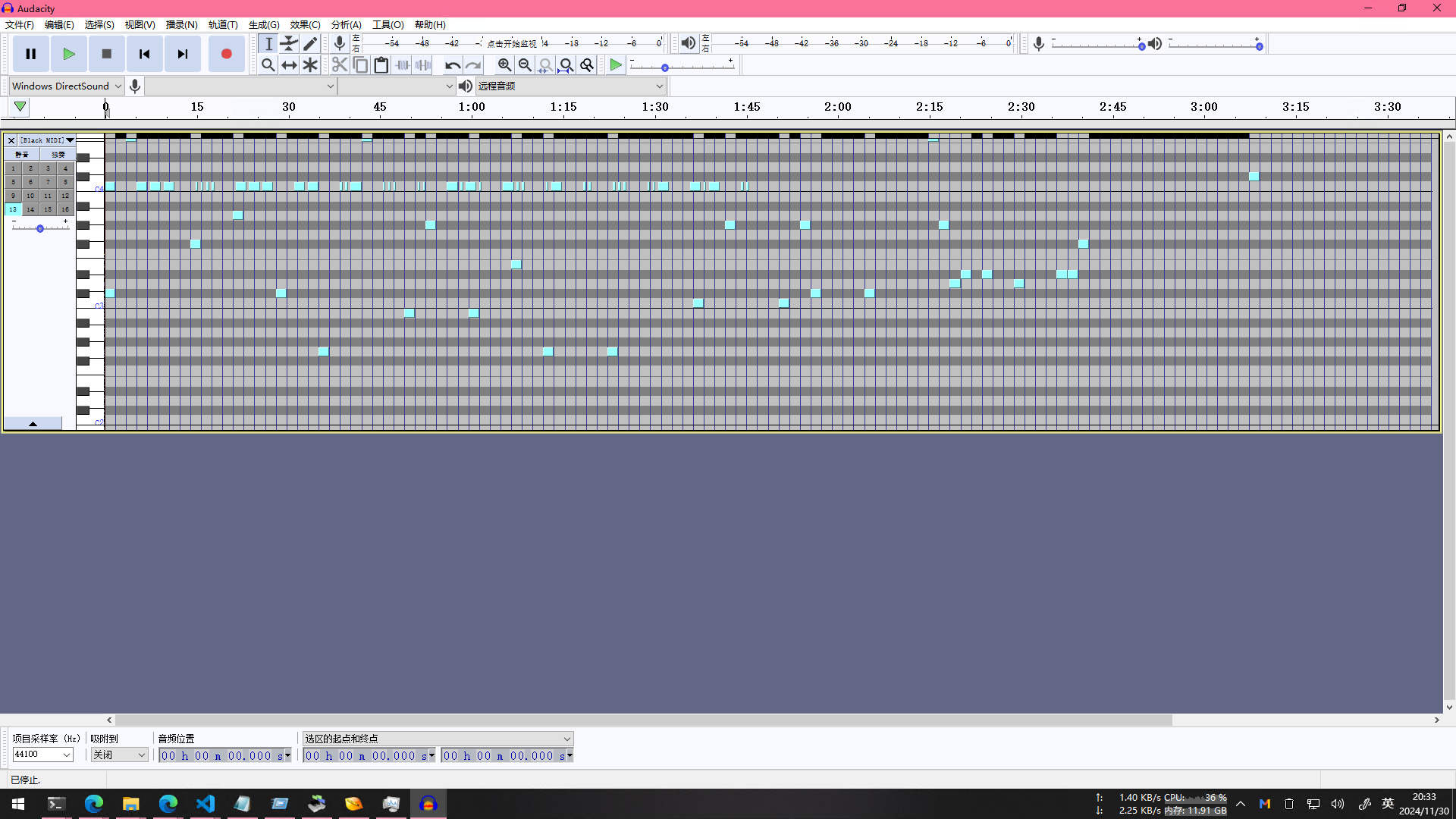 把MIDI丢到Audacity看,逐个轨道观察,发现第13轨道有类似于摩斯电码的东西