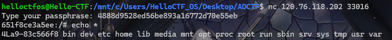 当然,没有libc,我们是用不了ls的,所以我用了echo *