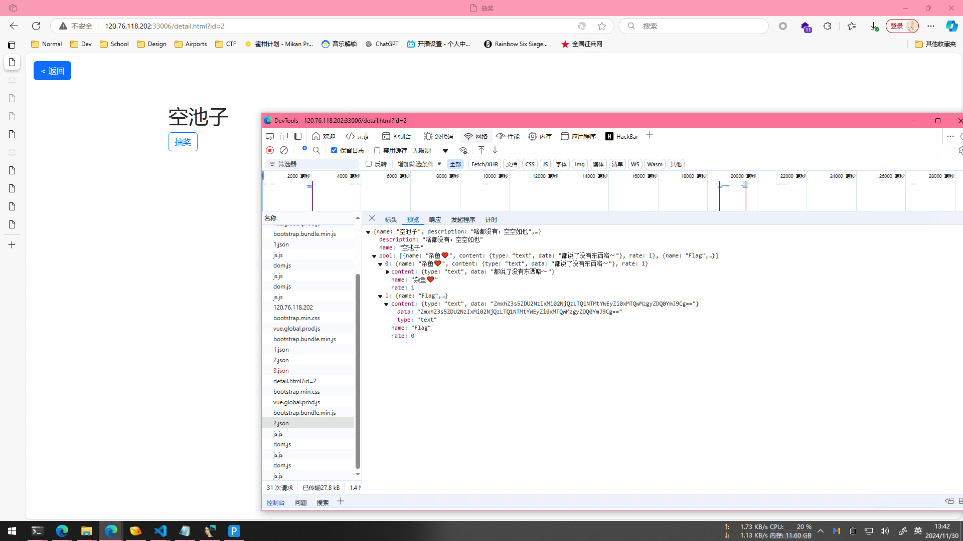 一道签到题,打开网站就能看到有两个卡池,然后在控制台能翻json,里面有列表,在空池子发现Name为Flag的内容