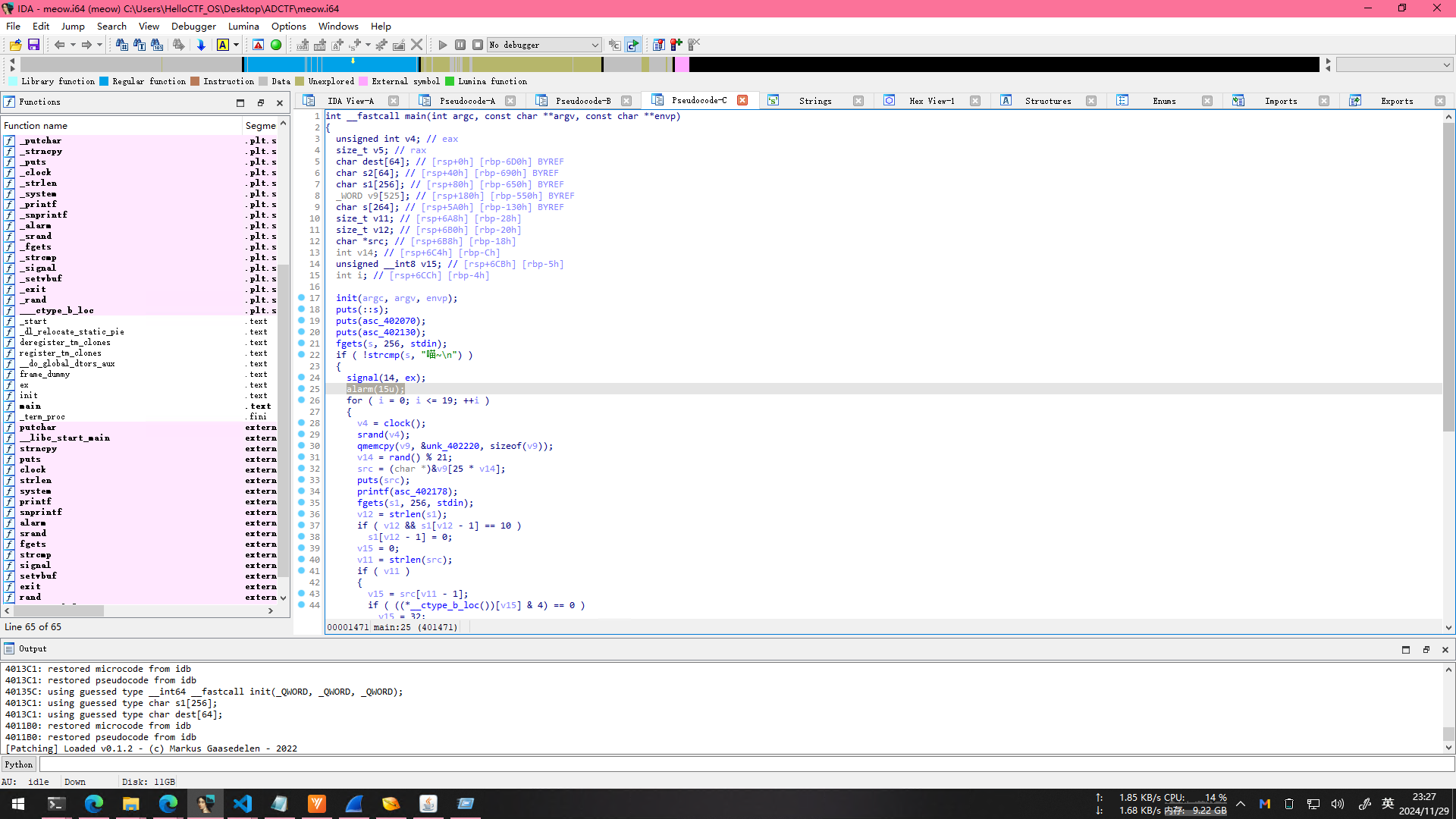 在main函数里发现了alarm函数,我的直觉告诉我这是脚本题