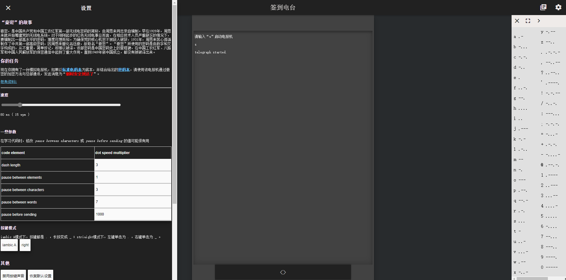 这题题目中其实没有太多的信息,主要是进去的那个网页里面有东西:一个标准电码表、一个密码本,然后附了一个参考资料