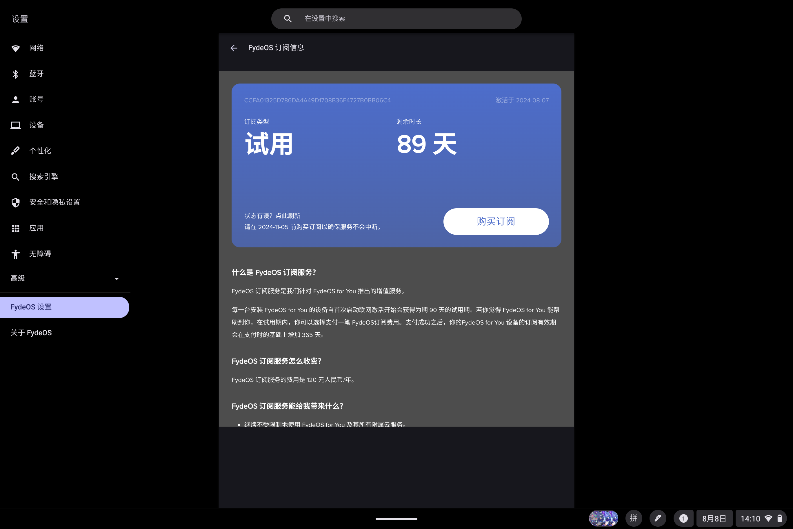 首先第一,我的观点就是好产品值得付费,但是FydeOS for You目前没有达到我付费的标准