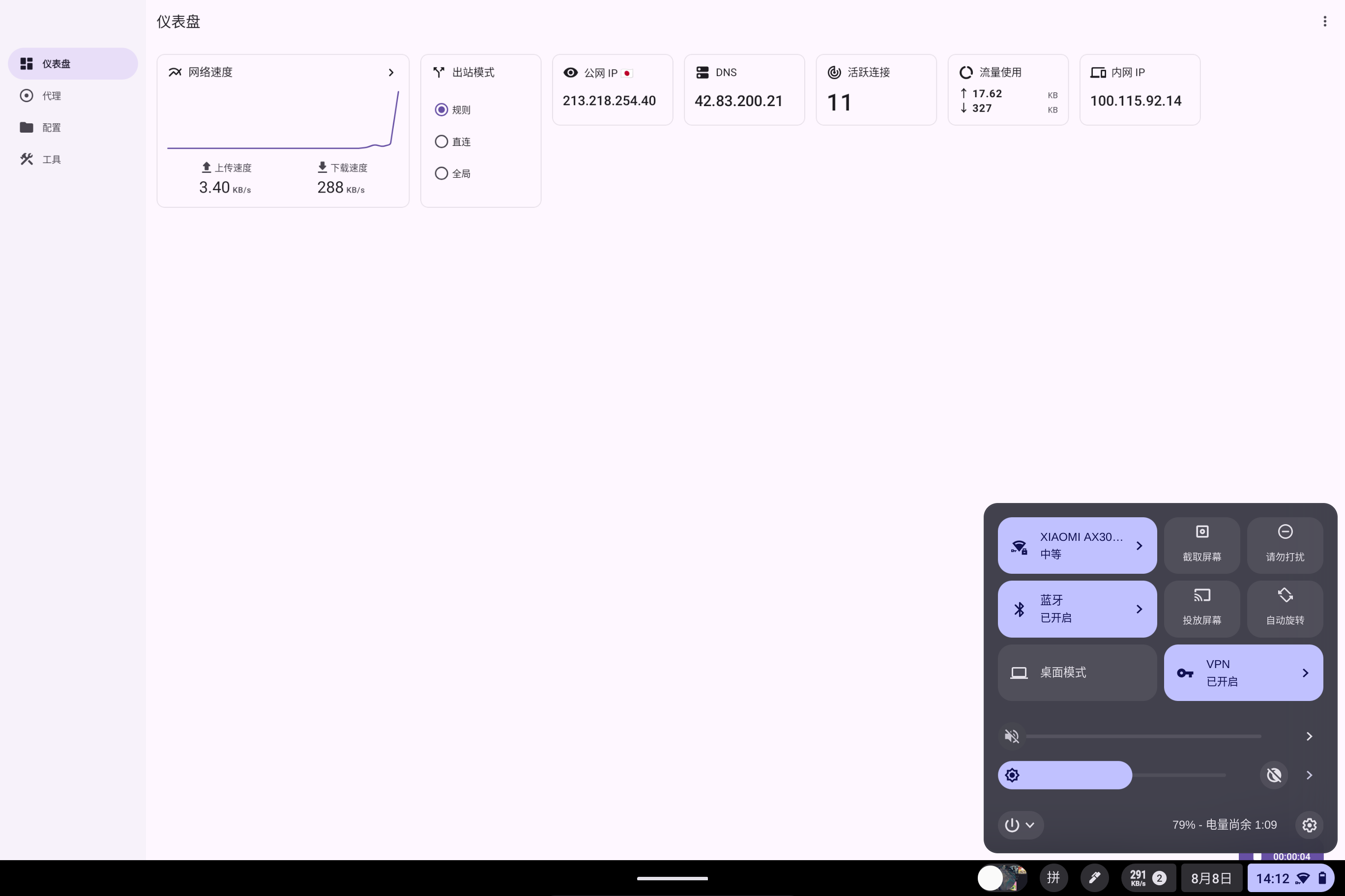 在Android开的VPN服务能够在ChromeOS中正常使用,也就是说,我打开了Surfboard后,我的FydeOS本体是可以正常搭梯子的