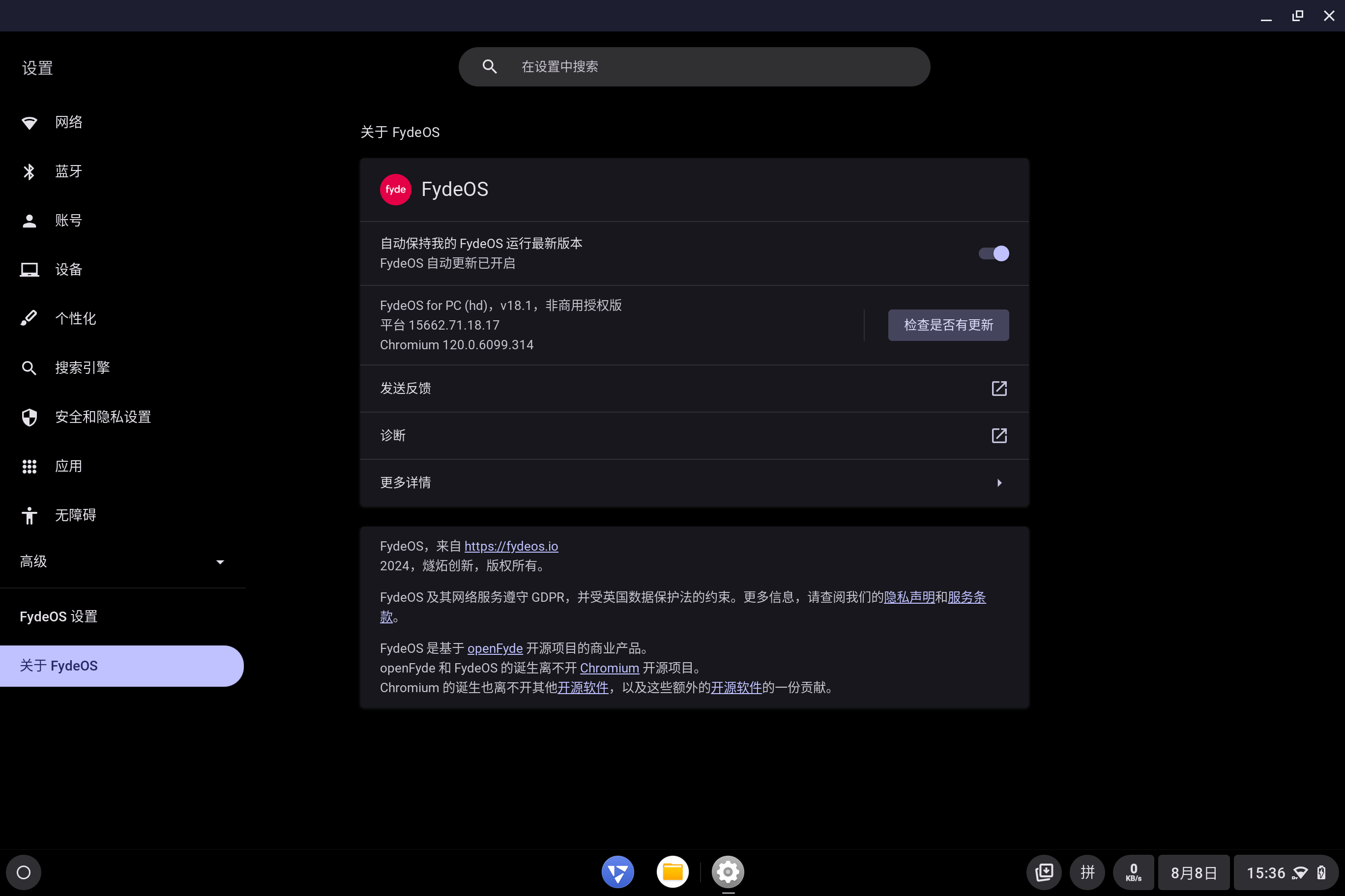 当然,如果FydeOS有像微软那样的Insider许可证(即安装Insider版本的系统后免费提供许可证,相当于用户自己承担新版不稳定系统的后果,向官方汇报)的话我很乐意成为Insider