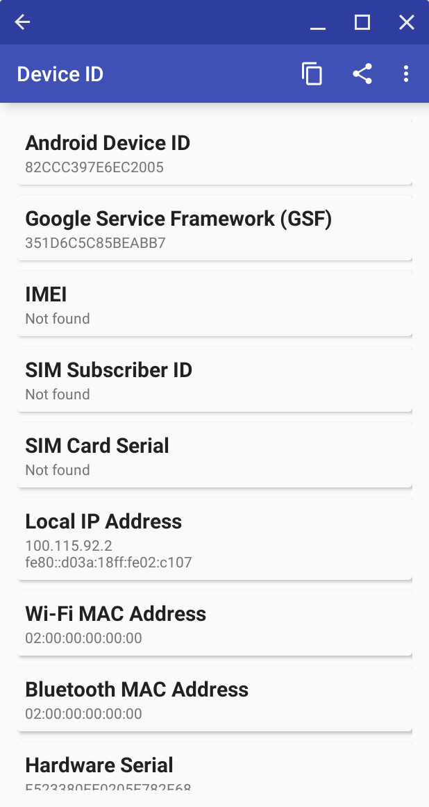 先在设备上安装deviceID(Apkpure)这个软件,然后打开能看到我们的GSF ID