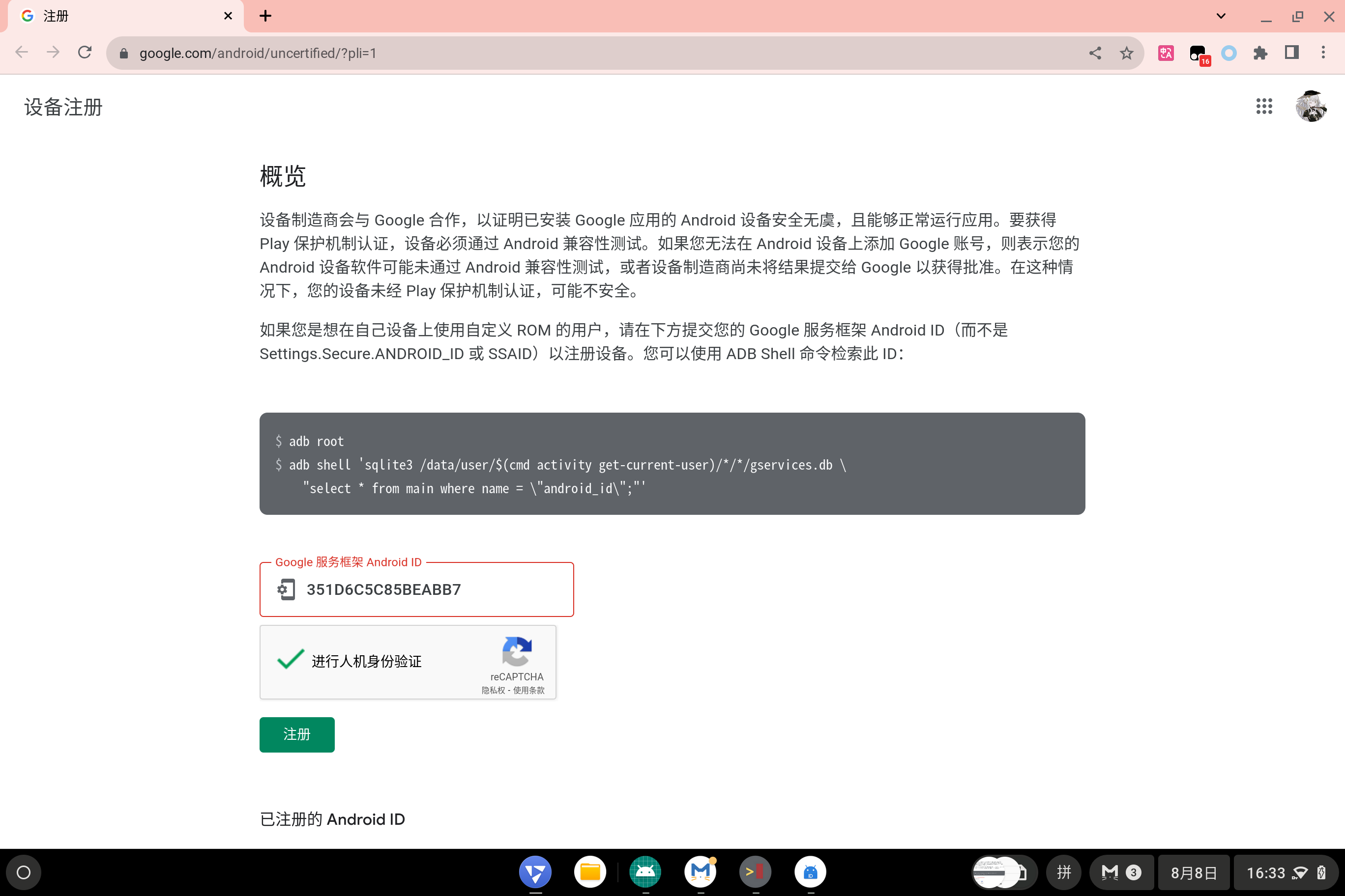 我们再访问谷歌设备注册页面 https://www.google.com/android/uncertified/