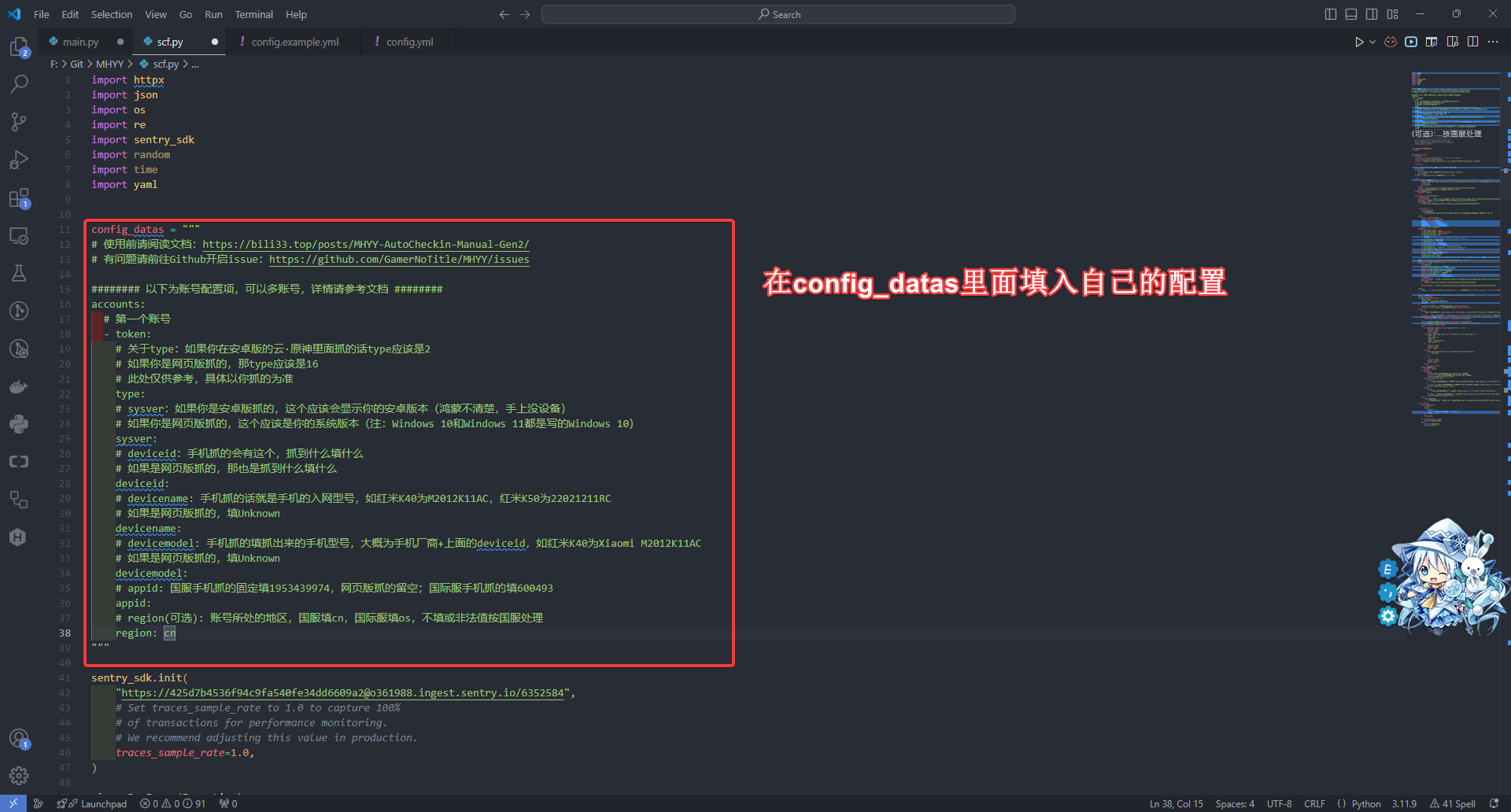 接着,在scf.py中的顶上的config_datas里面,填入自己的配置