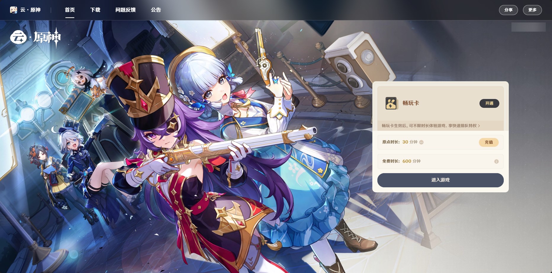 打开云原神网页版的链接云·原神 (mihoyo.com),完成登录,完成后应该会是下图的样子