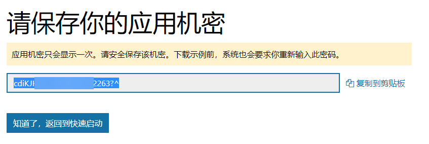 打开后登陆自己的Office账户,把显示的应用机密保存下来