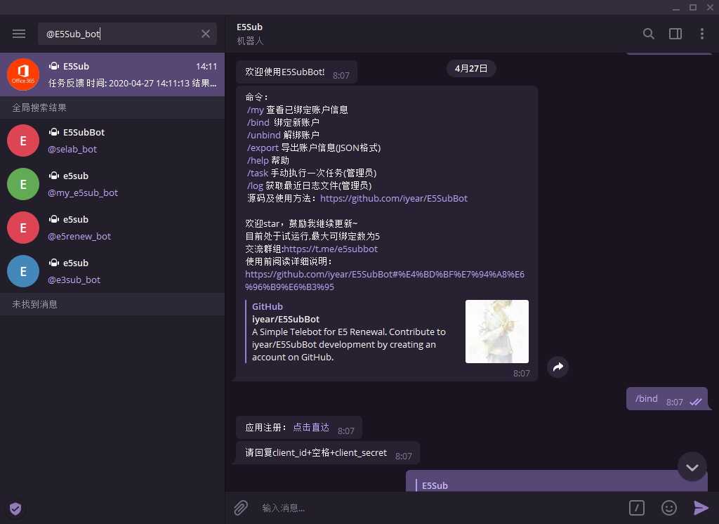 如果你有服务器也可以自己搭建,项目地址在这里https://github.com/iyear/E5SubBot