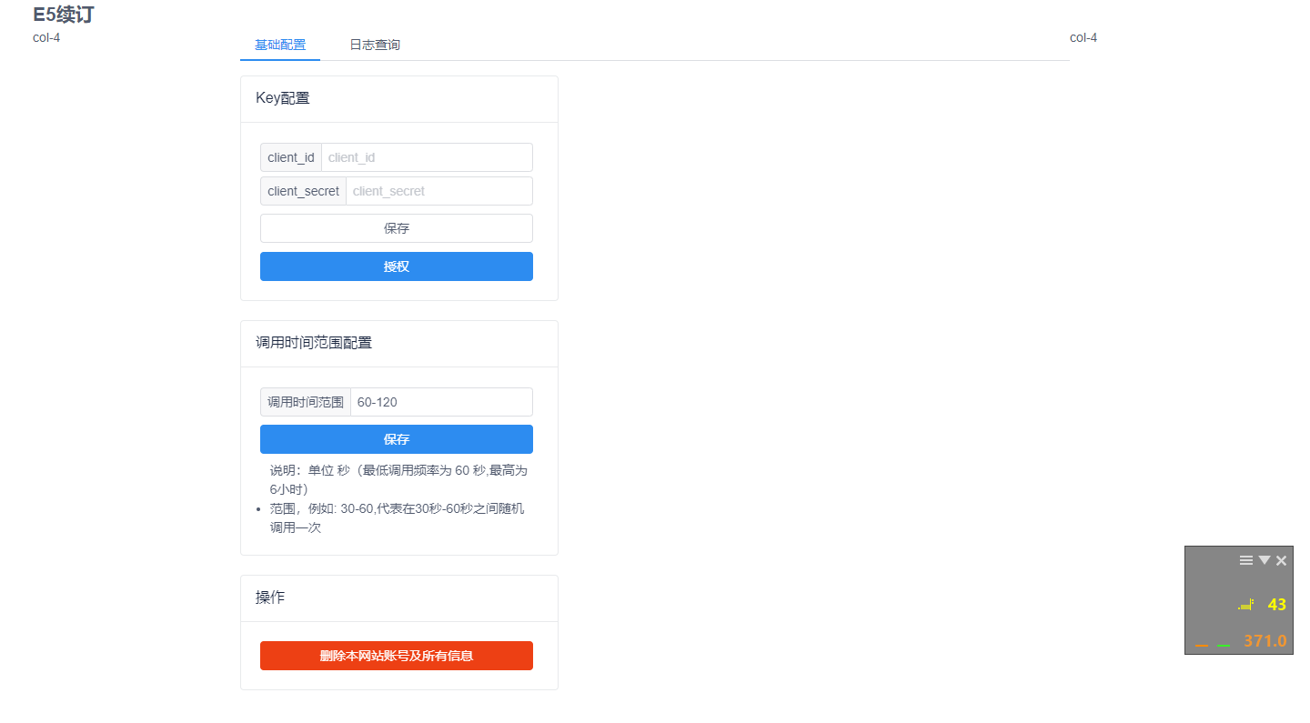 接着返回刚刚的那个网页,ID和机密填进去,然后点保存,接着点授权,一定要点授权,否则不会正常运行!