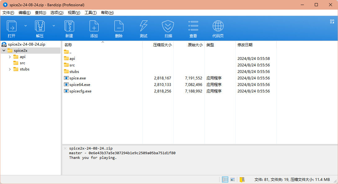 直接把里面的spice.exe、spice64.exe、spicecfg.exe拿出来放到你的SDVX目录即可,文件夹一个都不要碰