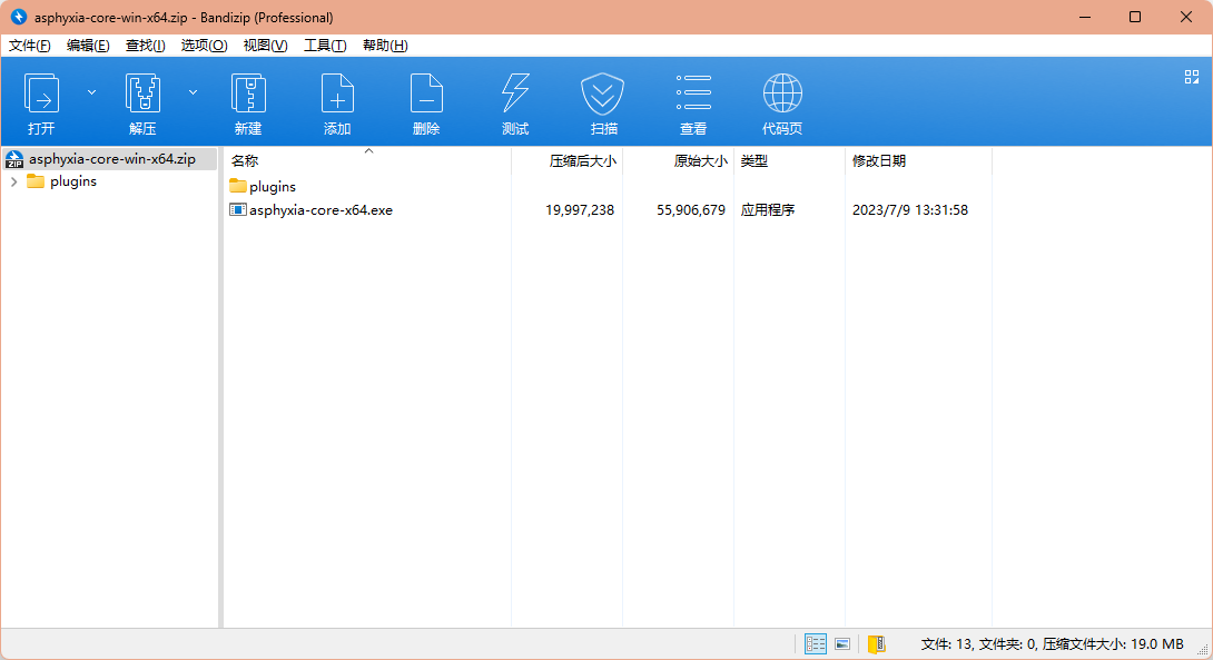 解压到一个顺手的地方,或者直接解压到SDVX6的目录内,asphyxia的文件与SDVX6本体不存在文件冲突,可以直接放在同一个文件夹