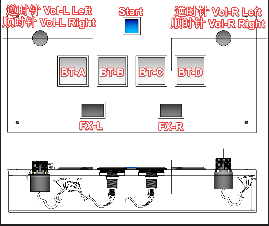 按键的代号对应实物如图所示(图片出自https://github.com/lizardbeans/sdvx-diy)