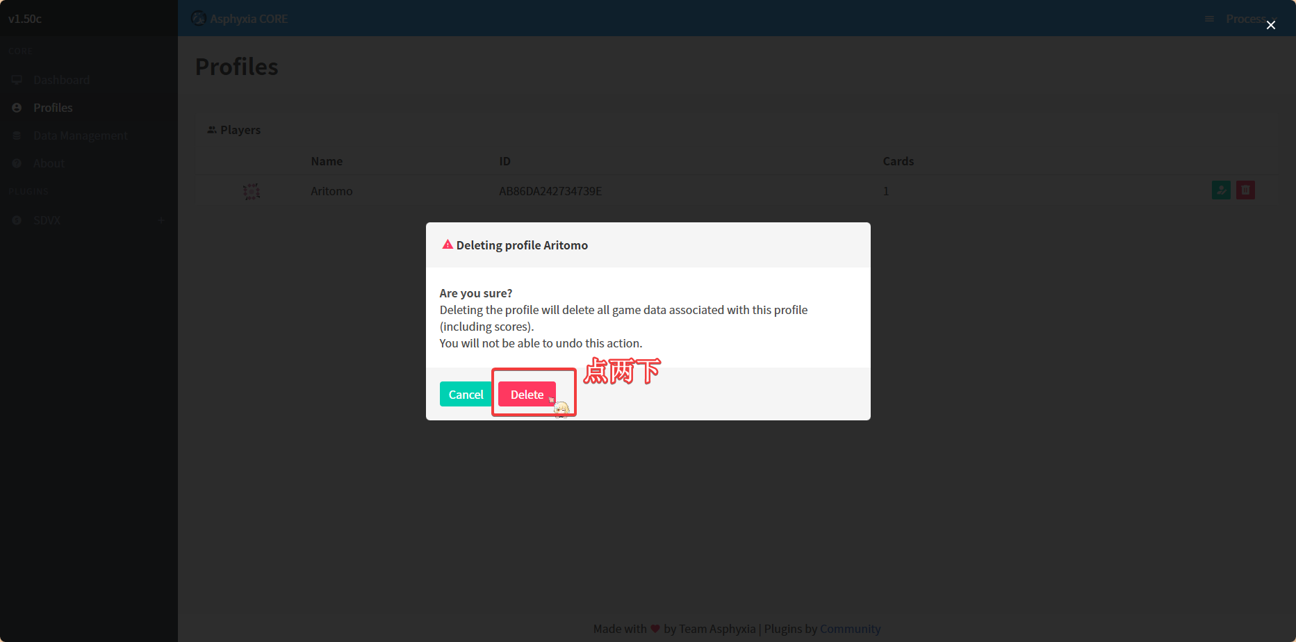 打开你的浏览器,访问http://localhost:8083/,然后点击左边的Profiles,然后找到你自己的配置文件,点击垃圾桶图标