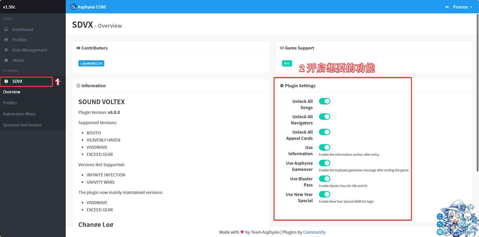 我们打开浏览器直接访问http://localhost:8083,在左边点到SDVX,然后在右边的卡片内开启你想要的功能,再点击Apply