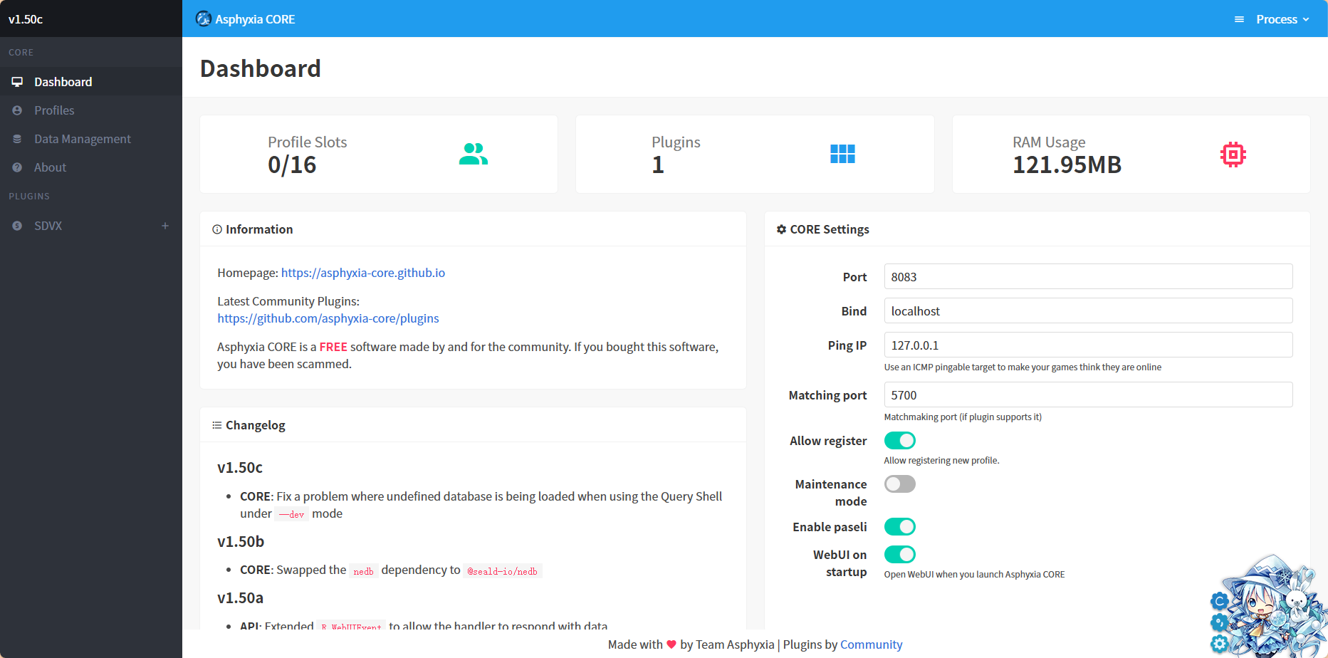 首先你要确保你的后台有一个Asphyxia Core正在运行,它应该是一个如图示一般的命令行窗口