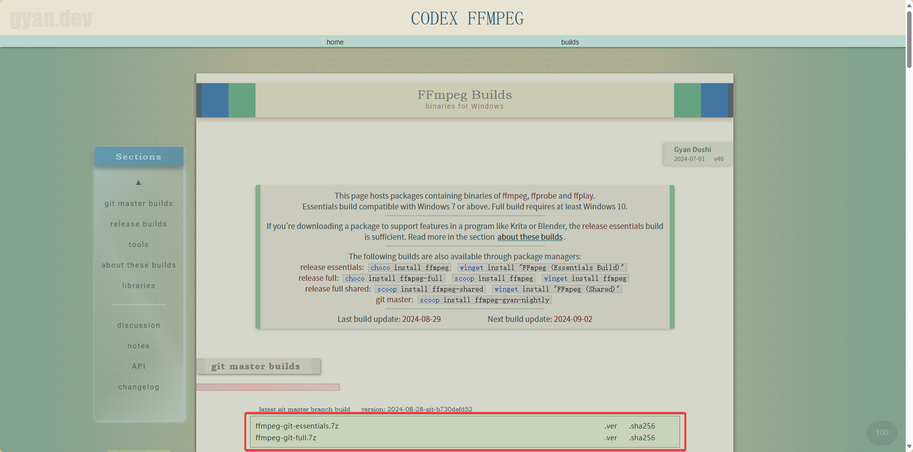 使用你的浏览器访问这个链接:https://www.gyan.dev/ffmpeg/builds/