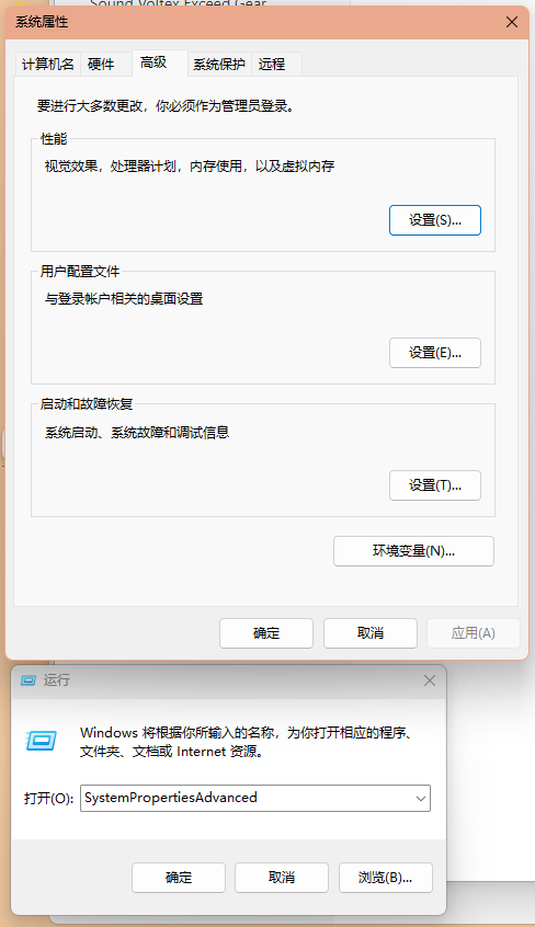 我们按Win + R,输入SystemPropertiesAdvanced,打开高级系统设置