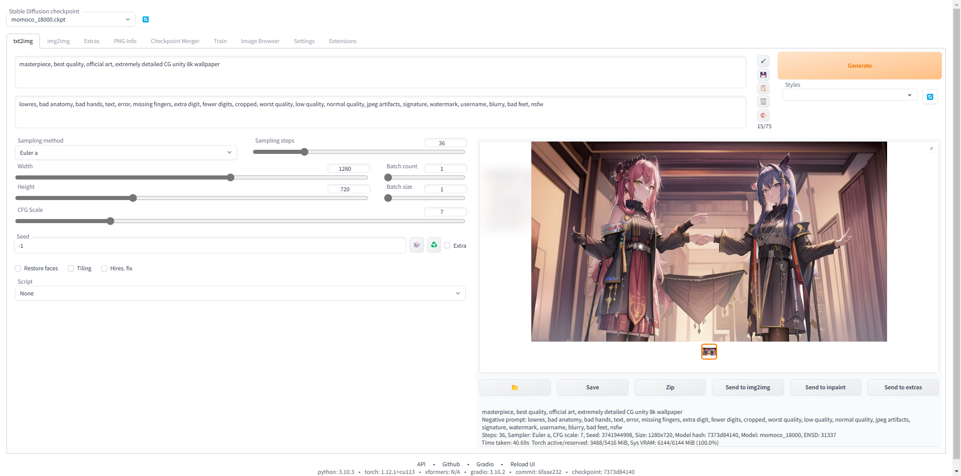 后来看到了Stable-diffusion这一套,换模型啥的会比naifu版更加方便,而且功能也更全面,于是果断转向naifu版