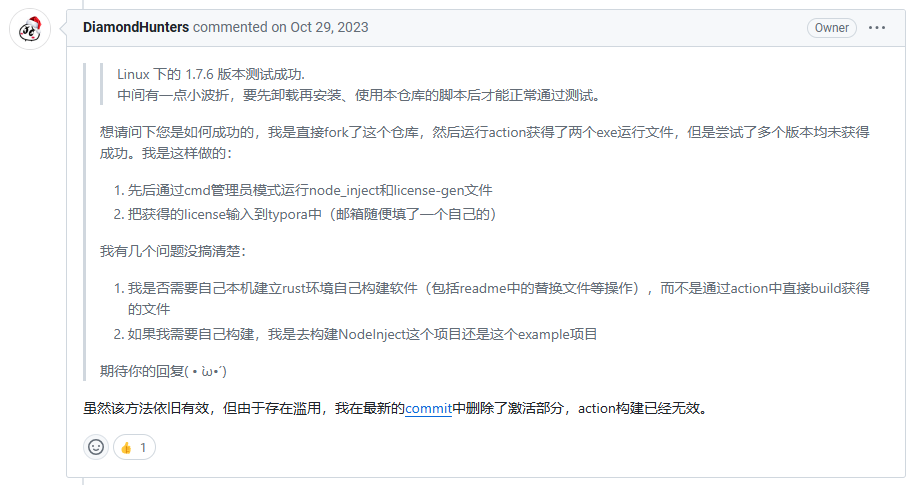 一开始我是使用了这个仓库Action中的版本,但是一直激活不通过,直到我看到了issue