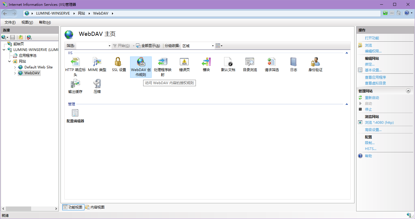 设置好了点确定,然后双击我们刚刚添加的网站,找到WebDav创作规则