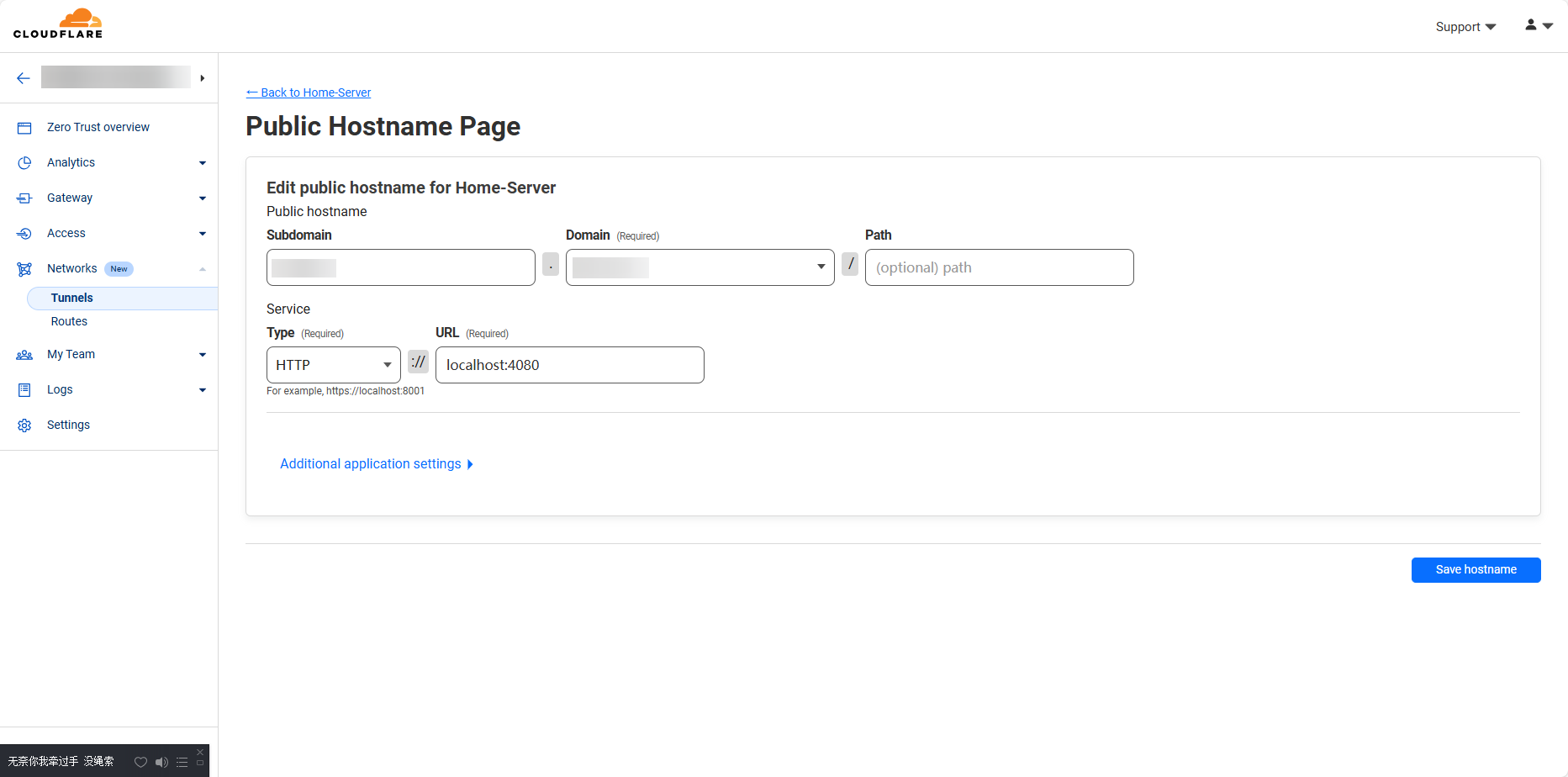 找到自己的服务器,进去后在Public Hostname添加一个网站,可以按我这么填(上面域名啥的就填自己的了)
