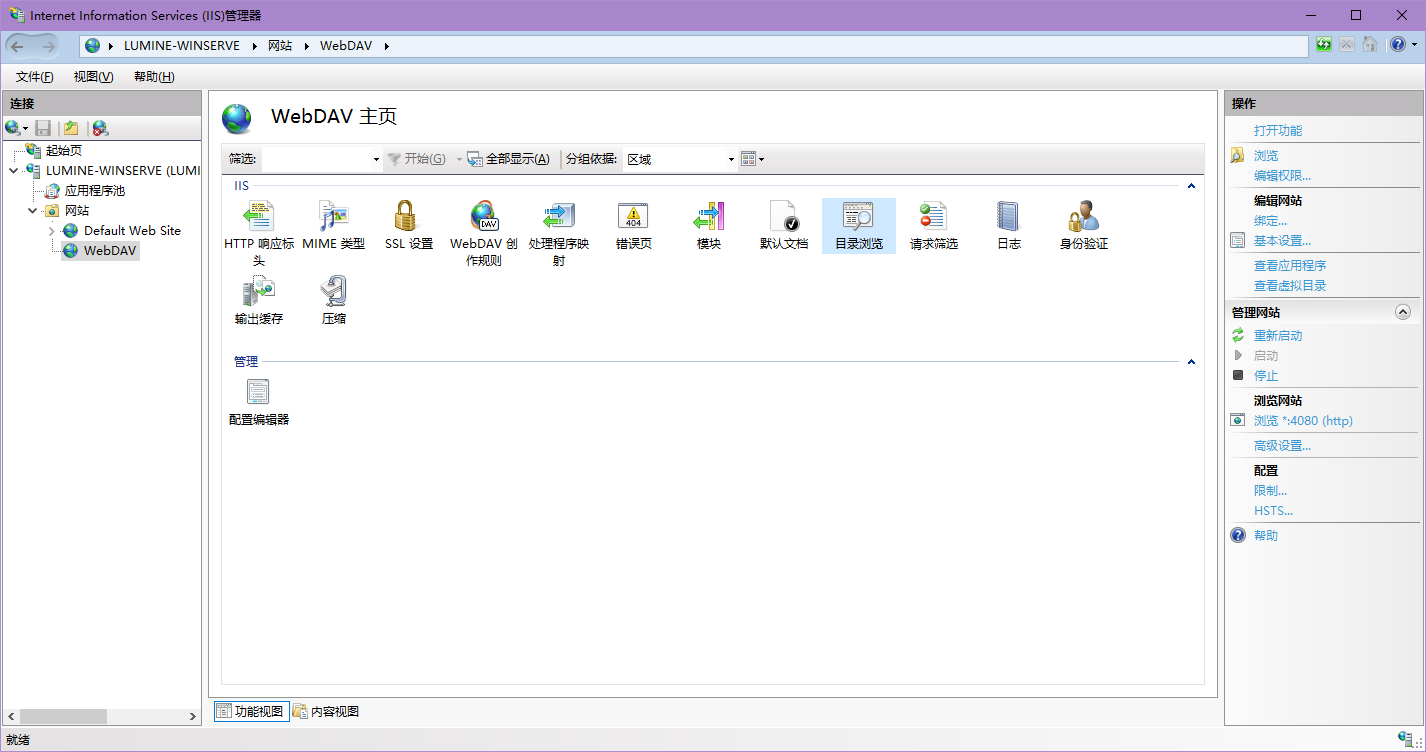 所以对于我家里的小霸王服务器,自我换成Windows Server后,需要在外访问的话就需要打开Webdav